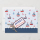 Nautische Thema Taufkarte mit Segelbooten, Krabben und Ankern mit 3D-Look Twinbogen und Tag.