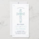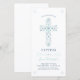 Dieses moderne, individuell gestaltbare Taufen oder Abendessen lädt mit einem eleganten illustrierten Blumenkreuz in Blau und Grün ein. Ideal für die religiöse Feier eines Jungen, kann es mit dem Namen Ihres Kindes und den Veranstaltungsdetails personalisiert sein. Die Hintergrundfarbe kann auch nach Ihren Wünschen geändert werden.