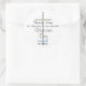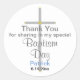 Vielen Dank Taufe Son rund Aufkleber. Einfaches handgemaltes Silberkreuz mit goldenen Akzenten vor weißem Hintergrund. Personalisieren Sie den Namen Ihres Kindes in elegantem, blauen Skript und Datum in schwarzem Text. Original Grafik und Design © TamiraZDesign.