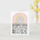 Eine Taufkarte mit Bibelzitat und Regenbogen auf der Vorderseite und eine schöne Nachricht von Godparent zu Godchild im Inneren.