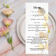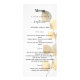 Taufkarte. Personalisieren und fügen Sie einen Namen, Datum und das Menü. Weißer Hintergrund, schwarzer Text. Die Einrichtung besteht aus einem großen, goldenen Eukalyptusstamm. Zurück: goldener Hintergrund.