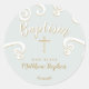 Taufscrolls in Pulverblau und Gold Runder Aufkleber