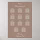 Taupe 11 Table Wedding Seating Chart Poster, bitte personalisieren Sie die Namen des Paares und die Namen der Gäste zusammen mit einem anderen Text, den Sie vielleicht personalisieren möchten. Ein stilvolles Plakat mit elegantem weißem Text auf einem hübschen, taupfarbenen Hintergrund.