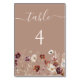 Taupe Boho Fall Wildblume Wedding Tischnummer