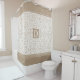 Weiße und blassfarbene Taupe-Damast-Muster mit taupe-geschmolzenen Rändern und monogramm Duschvorhang. Auf der oberen und unteren Seite des Vorhangs befinden sich blassgelbe Taupe-Bänder mit geschmolzenen Kanten, in der Mitte befindet sich das Monogramm. Sie können es mit Ihrem Namen personalisieren.