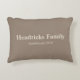 Taupe Familienname "Etabliert" mit hinterem Muster Dekokissen