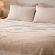 Taupe Ivory Horizon features a feathered gradient rising from warm taupe into soft ivory, creating a horizon-inspired flow with gentle tonal depth. The smooth transition layers easily over sofas, beds, or reading chairs, supporting relaxed styling in neutral-focused interiors.