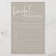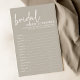 Dieses Brautwortspiel Taupe ist eine niedliche und clevere Möglichkeit, Gäste in einem Brautparty zu unterhalten! Das minimalistische Design verfügt über einen modernen Script-Schriftart mit einem sanften, neutralen und weißen Farbschema, das in jedem Brautparty schön aussieht. Es ist einfach zu spielen - man entwirft Wörter, die mit Hochzeiten, Liebe und Ehe zu tun haben. Eine großartige Aktivität, die alle zum Mingeln und Lachen bringt!