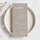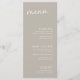 Machen Sie Ihr Brautparty zu einer schicken Affäre mit dem Minimalistischen Brautparty-Menü Taupe, mit einem raffinierten modernen Skript-Schriftart, das schlichte Eleganz ausstrahlt. Die Gäste werden die schicke Einfachheit dieses Menüdesigns Liebe finden. Sein minimalistischer Stil verhindert, dass er überladen oder übermäßig fussig erscheint. Die Taupe-Farbe verleiht eine subtile Touch der Persönlichkeit. Es ist das perfekte Menü für die moderne Braut, die ihre Dusche will, um sich frisch und zeitgemäß zu fühlen.