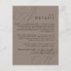 Provide your wedding guests with all the important details using this enclosure card. It features an elegant simple design with beautiful calligraphy script monograms of the bride and groom on alternate corners. A neat text layout displays the details you wish to provide your guests in a clean classic look. Replace the sample text with your information. You may move your initials slightly left or right, up or down to accommodate their best display in this design format. The monograms look best when they run slightly off the edges. Change any wording on the invitation to accommodate your info. To make additional changes in the personalized template, select "edit using Design Tool" at the bottom of the template which will open the Design Tool for full editing. Shown here in neutral taupe, other popular colors are available in this design.