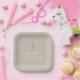 Taupe Script Religious Cross Boy Taufe Pappteller