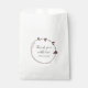 Vielen Dank für Ihre Hochzeitsbesucher mit dieser großen, weißen Gefälligkeitstasche, die eine einfache, taupe Farbe Herz Kranz-Design und stilisierten Drehbuch zusammen mit den Namen der Braut und Bräutigam in schwarzen Buchstaben gedruckt. Personalisieren Sie Ihre Lieblingstasche, indem Sie die Namen bearbeiten und ersetzen.
