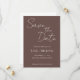 Einfache Hochzeit im Stile rette den aktuellen Einladungen, die weiße, stilisierte Schriften auf einem trendigen, taupe Farbhintergrund enthalten. Bearbeiten und ersetzen Sie Namen, Datum und Position mit Ihrem eigenen. Wählen Sie Ihre Einladungsgröße und Ihren Papierstil aus.