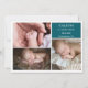 Taupe Teal Baby Photo Collage Announcement Card Einladung