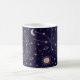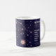 Taurus das Bull Horoskop zodiac astrologisches Schild Design mit Sternen im Holografen Stil Monde Sonnen Planeten auf einem tiefblauen lila Hintergrund. Ein einzigartiges Design, das die gesamte Tasse umschließt, beinhaltet den Zoonamen, das Symbol, die Konstellation und lustige Ernährungsfakte über das Tierzeichen des Taurus. Ein lustiges Geschenk für jemanden geboren zwischen dem 23. Juli bis August 22 unter dem Erdzeichen von Taurus.