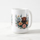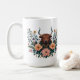 Feiern Sie mit dieser wunderschön gestalteten Kaffeemaschine die ruhige und ruhige Natur des Taurus. Dieses Design mit einem majestätischen, braunen Stier in der Mitte, umgeben von einer lebhaften Auswahl an pfirsichfarbenen Blüten, zarten violetten Blumen und üppigem grünem Blattwerk, verkörpert die Kraft und Ruhe, die das Taurus-Zeichen mit sich bringt. Diese Tasse ist perfekt als Geschenk für die unter Taurus geborenen und bringt eine Touch von naturlich inspirierter Eleganz in ihr tägliches Kaffeemitual.