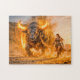 Taurus Zodiac with Warrior Leading a Fiery Celesti Puzzle