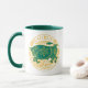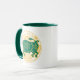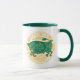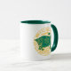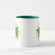 Taurus Zeichen des Zodiaks in grün und gelb auf einer zweifarbigen Kaffee-Tasse.