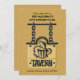 Die Einladung eines großen "Mannes", die ein Tavernezeichen mit einer Tasse Brew kennzeichnet. Der Hintergrund ist dunkles Gold und das Zeichen ein helleres Gold und es hängt von einer starken schwarzen Kette. Vervollkommnen Sie für eine männliche Feier.