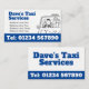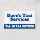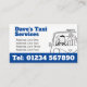 Taxi Services Business Card für einen Taxifahrer, der an Kunden übergeben wird. Taxi-Abbildung mit fett gedruckter Telefonnummer auf beiden Seiten der Visitenkarte.