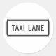 Dieses Design ist ein Fahrradschild. Auf dem Schild sind die Worte Taxifahrstreifen geschrieben. Dieses Schild auf der Fahrbahn sieht auf diesem Aufkleber großartig aus