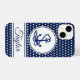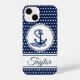 iPhone-Abdeckung im maritimen Stil, blau und weiß, Ankersymbol, individuelle Name-Vorlage