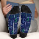 Typografischer Name Text blau, grün, grau und weiß auf einem dunkelblauen Hintergrund benutzerdefinierte Socken-Design. Die Hintergrundfarbe kann bei Bedarf geändert werden. Spaß personalisierter Grafik personalisierte Socken. Personalisieren Sie mit Ihrem eigenen Namen, derzeit liest Hayden, großartig, um Socken-Mix-ups zu verhindern. © Art and Design by Sarah Trett for www.mylittleeden.com