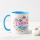 La taza de viaje “Celebra Conmigo” es ideal para llevar tus bebidas favoritas a donde vayas. Su diseño moderno y alegre la convierte en una excelente opción tanto para uso diario como para regalo especial.