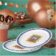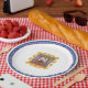Aus einer originellen Serie klassischer Musiksammler Teller von ZoeSPEAK zeigt diese Platte ein Portrait des Komponisten Peter (Pyotr) Ilyich Tchaikovsky. Das Portrait ist eine handgetönte Ätzung, umgeben von originalen Illustrationen: ein verzierter goldener Rahmen mit einer russischen Zwiebelkuppel. Der Rahmen ist auf einem Hintergrund aus mittelblau mit roten und goldenen Streifen, goldenen Sonnen und weißen Schwänen. Unter dem roten Portrait ist der Name des Komponisten zu sehen. Die Tapete ist umgeben von mehr goldenen Bändern, in der Mitte der Platte vor einem weißen Hintergrund. Am Rand der Platte befindet sich ein mittelblaues Band mit weißen Schwänen und einem roten Rand.