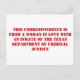 TDCJ-Korrespondenz #1 Postkarte
