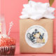 Große, runde Aufkleber eines gestopften Teddybären und eine karierte Teekanne - perfekt für jede anstehende Babydusche, wo Sie leicht alle Texte aktualisieren können. Nutzen Sie Einladungen, Karten, Geschenke, Favoriten und mehr!