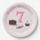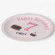 Das Design zeichnet sich durch einen farbenfrohen rosa Hintergrund aus. Heller rosa Text zeigt das Alter des Geburtstagsmädchens in der Mitte an. Der anpassbare Text lautet "Happy Birthday und wird als Bogen oben im Design angezeigt.