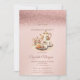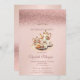Elegant tea service with flowers on a rose gold glitter bokeh background.