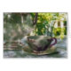 Ein reizendes kleines Gemälde. Tea time im Garten. Eine Teetasse sitzt neben einer silbernen Teekanne auf einem Spitzentablett. Der Schatten eines nahegelegenen Baumes lädt zum Verweilen ein. Eine perfekte Karte für jeden Anlass. Das Originalgemälde ist nur 7 Zoll x 5 Zoll