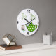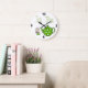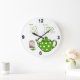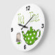 Stilvolle Küchenwand, mit Grafik eines Teebeutels und einer grünen und weißen Polka Dot Teekanne. Tea Time in whimsical grünen Text, oben ist vollständig anpassbar, um zu lesen, was Sie gewollt. Die Zahlen sind in schwarz. Niedlich aussehende Uhr, die Ihrer Küche einen großen Akzent verleihen wird.