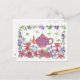 Ein Aquarellbild eines Set für Tee mit einem karierten Tee-Set und hellen hübschen Blume.