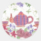 Tea Time Teapot und Blume Runder Aufkleber