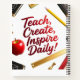 Inspiration Lehrer zitieren Design mit Apfel und Bleistift auf transparentem Hintergrund.