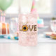 Die Liebe Inspiriere Lehrer Sonnenblumen Moderne Personalisierte Namen kann Glas Bier Glass Features mit dem Text "Teach Liebe Inspirier" in einem lustigen modernen leopard Print-Schrift Typografie und mit einem Herz und Sonnenblumen und personalisiert mit Ihrem individuelle Name. Ideal für die Lehrerfreundlichkeit zu Weihnachten, Geburtstagen und Feiertagen. Designed by ©2025 Evco Holidays www.zazzle.com/store/evcoholidays