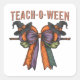 Teach-O-Ween Square Sticker. Teach-O-Ween (Teacher Halloween), had everyone laughing as the teacher wore a giant colorful bow with witches’ hats on each side, casting giggles!