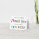 Zeigen Sie einem Lehrer Ihre Wertschätzung mit dieser farbenfrohen Dankeschön-Karte, die mit dem Namen Ihres Lehrers personalisiert sein kann. Die Formulierung auf der Vorderseite lautet "Danke, dass du ein wunderbarer Lehrer bist!", mit mehrfarbigen Buchstaben auf "Danke" und "Lehrer". Ob es das Ende der Amtszeit ist, die Lehrerwertungswoche oder eine Schulreise, es ist eine stilvolle Art, einem Lehrer zu zeigen, dass er seine harte Arbeit erkennt. Diese Karte ist leer für Ihre eigene Nachricht.
