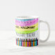 Tasse zum Thema Schule personalisiert mit Namen und Klasse der Lehrer, Name und Titel der Lehrkraft, oder Schulname mit farbenprächtigem Schulhintergrund auf beiden Seiten. Testen Sie dieses Design, indem Sie Ihre Informationen eingeben, um zu sehen, wie es aussieht! Wenn Sie den Text verändern möchten, klicken Sie auf 'Anpassen', um das 'Design-Tool' einzugeben.