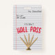 Teacher student bathroom hall pass with lined notebook paper and pencils. Vertical orientation with lanyard attachment. Great for elementary school and middle school classrooms. Customize the teacher name, grade, and room number.