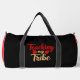 This black and red duffle bag celebrates the special bond between teachers and their students, featuring the heartwarming phrase "Teaching my Tribe" in a stylish, two-toned font with apple icons. It's an ideal gift for dedicated educators who cherish their classroom community. Edit color of the bag caps and body in the Design tool to your favored colors.