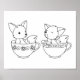Teacup Foxes - Babys auf einer Cups-Farbseite Poster