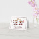 Niedliche Geburtstag-Karte mit einer Abbildung von zwei polka gepunkteten Teakups unter gemütlichen Dampfbändern. Leere im Inneren.