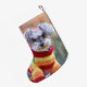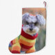 Teacup Schnauzer Welpenhund in einem Pullover Kleiner Weihnachtsstrumpf