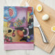 16" x 24" Geschirrtuch mit einem Bild der bunten Teacups und Teekannen mit Moosbeere und rosa Grenzen. See zusammenpassende Stoffserviette, Papiercocktailserviette, Stoff-Tischset, PapierTischset und Untersetzer. Sehen Sie die gesamte Märchenland-Geschirrtuchsammlung im FOOD/BEV | Leinenabschnitt.