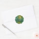 Teal and Green Peacock Wax Look Seal Runder Aufkleber