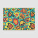Teal and Yellow Retro 1960s Mod Floral Pattern Seidenpapier